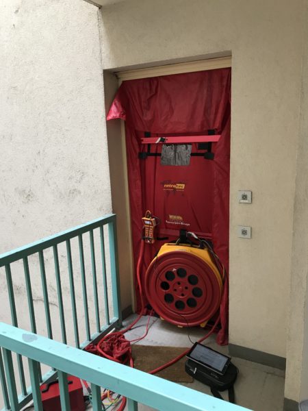 Bâtiment qui comprend 27 logements individuels, réparti sur 4 niveaux. Le test d’infiltrométrie a été réalisé en mai 2018 pour 1 logement situé au R+1 du bâtiment.